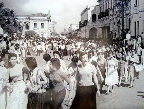 Damas cruceñas en la Plaza Principal en 1957